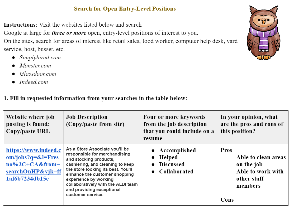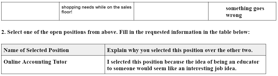 For this assignment, our class had to look for three open entry-level positions at workplaces and see which one of the three positions we would like to choose first. I chose the entry-level positions I wanted because I would think they would earn me a good salary while doing something I can tolerate. I chose this sample because I feel this may be important later on in my life for when I graduate from high school.