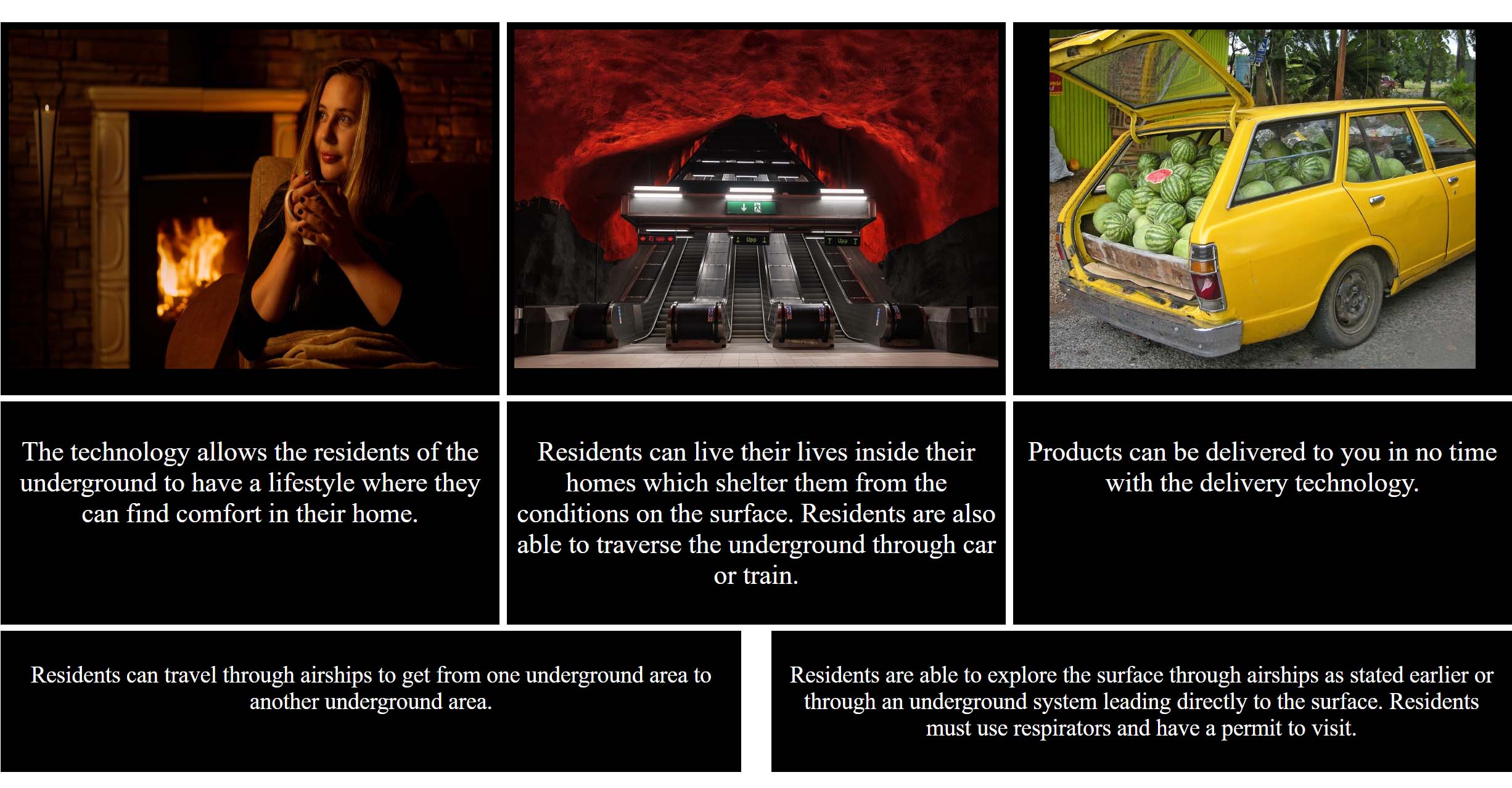 For the website, we were tasked with creating a website based on the short story, E.M. Forster’s “The Machine Stops” which is about humanity living underground, believing the surface is uninhabitable. Our goal was to create a website where people can browse the underground homes and learn more about the company. This website was created with a partner that would work on different parts of the website. Software I used was VS Code for creating the website’s code, HTML for creating the visual parts of the website, CSS for stylizing the website, GitHub for sharing code and saving the code, and Netlify, for publishing the website. Concepts we learned when creating the website was the ability to create a background image for the website and how we can use media queries to adjust the website for both desktop and mobile devices. We were successful in adjusting the background image to a size we wanted that was possible as well as making the website informative. Challenges we faced were aligning the text boxes where we needed them to be. The habits of mind we employed were investigation to look for solutions to our problems, collaboration to help each other out with the website, and communication when we discussed what we would do with the website.